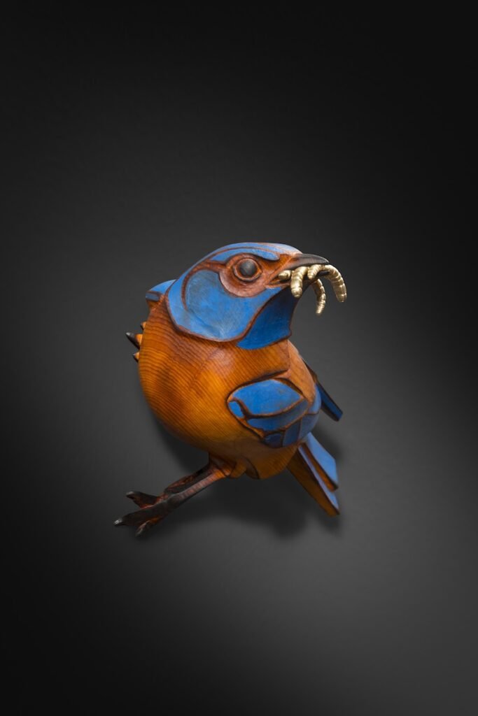 Sue Simpson, owner of Simpson Gallagher Gallery in Cody, Wyoming, which represents O’Gormley, first met the artist in 2021 at an exhibition at the Woolaroc Museum & Wildlife Preserve. At the show Simpson purchased O’Gormley’s piece WIDE OPEN, a sculpture featuring four baby birds with their mouths open waiting to be fed. The piece displays the lighter side of the artist’s oeuvre.