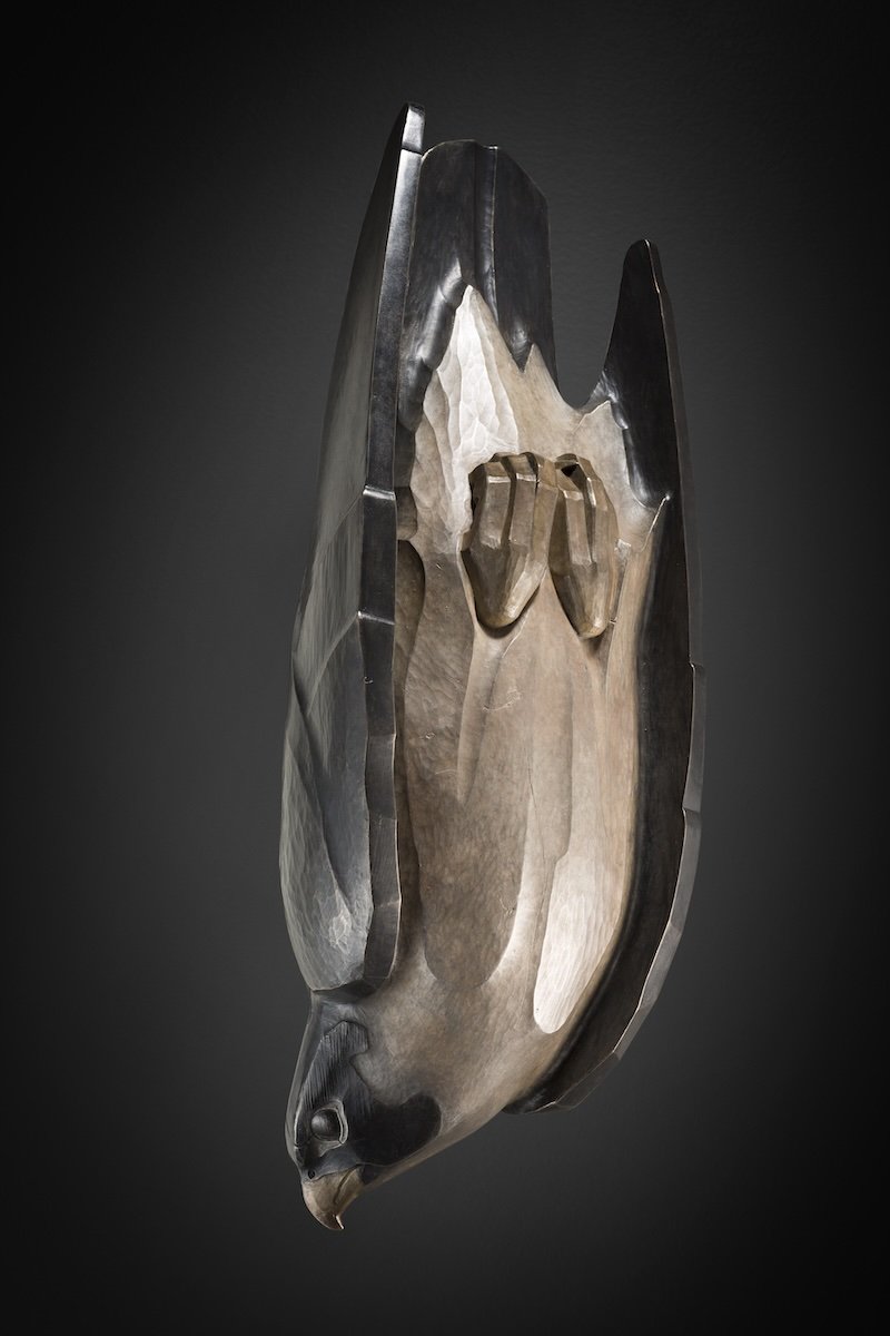 Interestingly, O’Gormley’s parents named him Peregrine after a specific falcon, in a sense tying him to the natural world from birth. In ANGELORUM the artist depicts his namesake, a falcon going into a deep dive or stoop on the hunt for prey. Falcons are known as the fastest animal on the planet. When the powerful, lightning-fast avian dives, it can travel at speeds up to 240 miles per hour. “The inspiration for ANGELORUM is quite personal,” the artist says. “This is a vision of the desire to have our loved ones caught as they fall, an angel’s flight. I hesitate to use the term angel’s flight as I subscribe to no doctrine; however, the spirituality surrounding death has become visceral for me in the wake of my father’s passing.”
